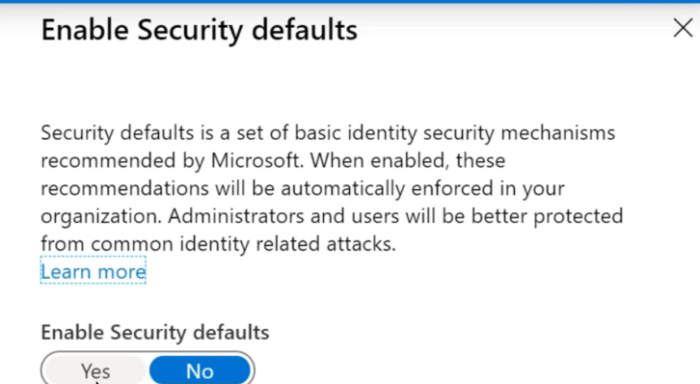 - 在这里,将安全默认值设置为 Disabled。
