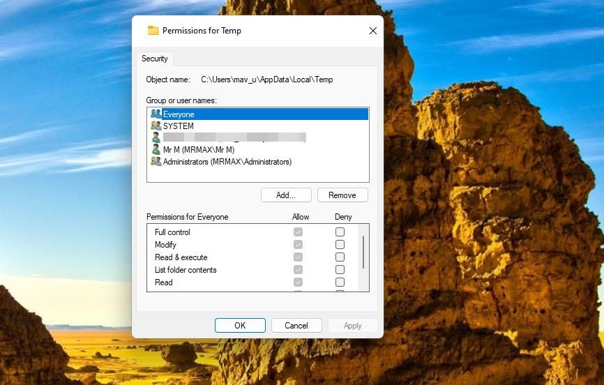 如果您没有对 Temp 文件夹的完全控制权限,则可能会出现“Windows上Problem With This Windows Installer Package此 Windows 安装程序包的问题”。 您可以通过设置 Temp 文件夹的权限来解决此类潜在原因,如下所示: