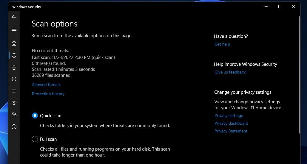 恶意软件是错误 0xc000003e 的另一个可能原因。 因此,建议用户在 Windows 中手动运行防病毒扫描。 这是使用内置 Windows 安全实用程序运行防病毒扫描的方法:
