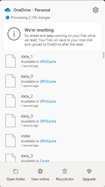 OneDrive 的缓存数据和临时文件可能会损坏并使其出现故障。 要解决此问题,请删除缓存数据,清除导致错误的任何损坏的数据或设置。 就是这样: